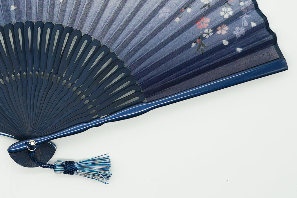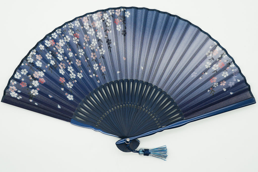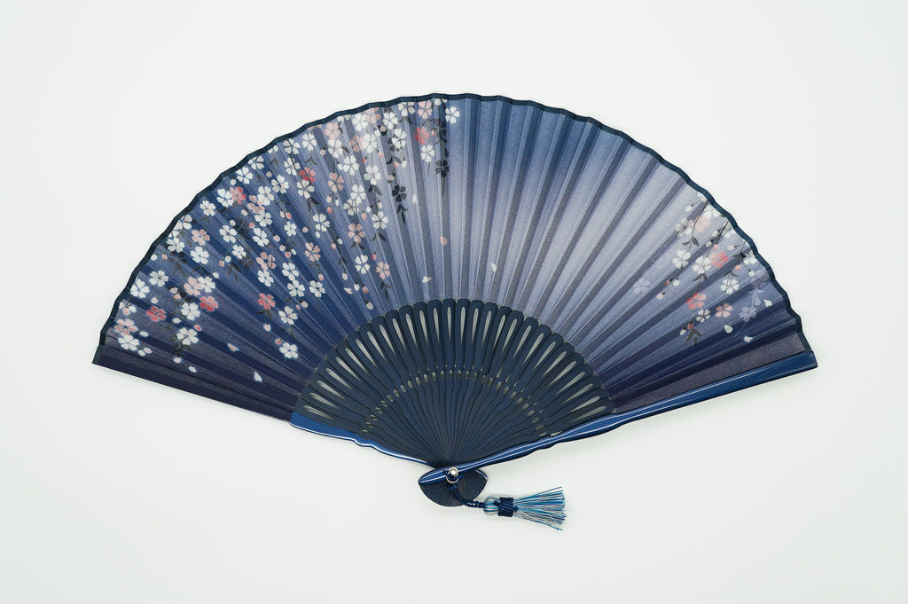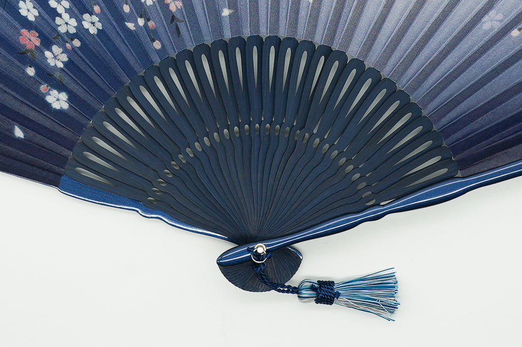 Characteristics of silk fans : They are made by pasting fabrics such as silk, cotton, and linen onto the fan surface, allowing you to enjoy the variety of expressions that the fabric has, such as its texture, texture, woven pattern, and ground pattern.