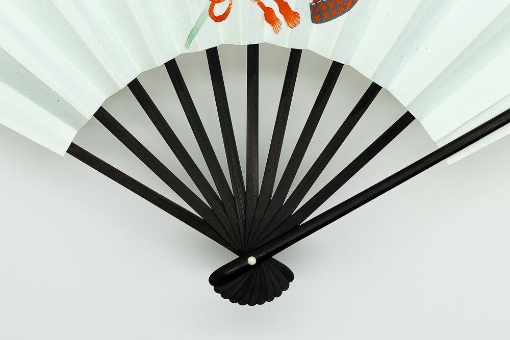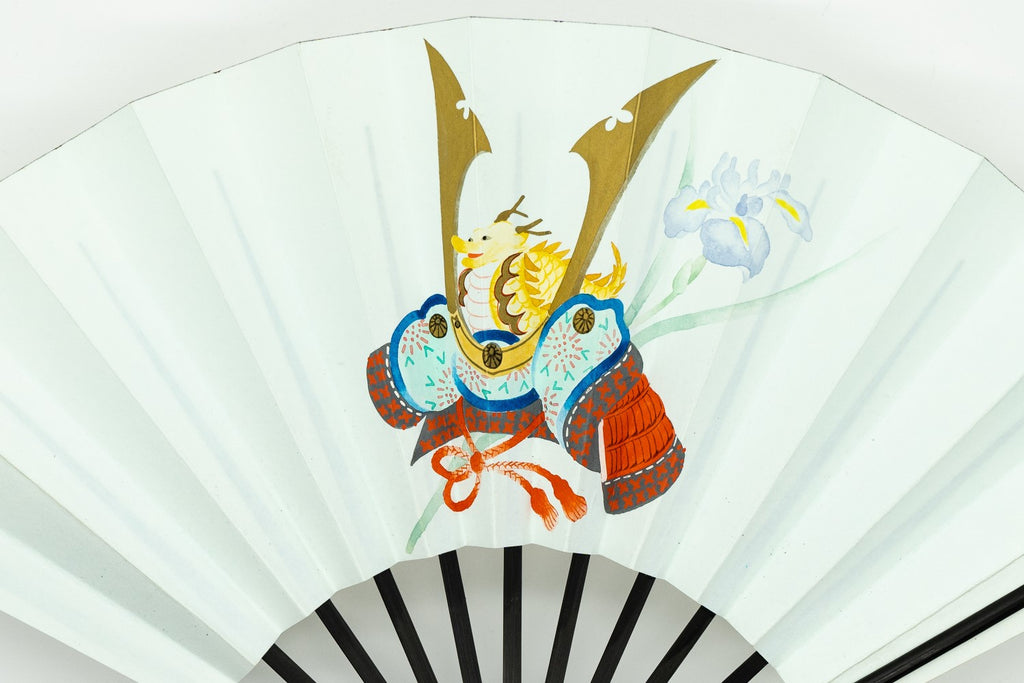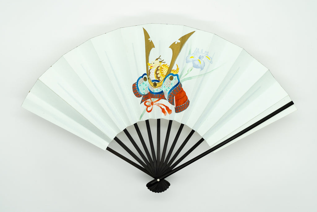 【一点もの】白地の扇面に色絵の兜が描かれています。すっきりとしたシンプルなデザインです。