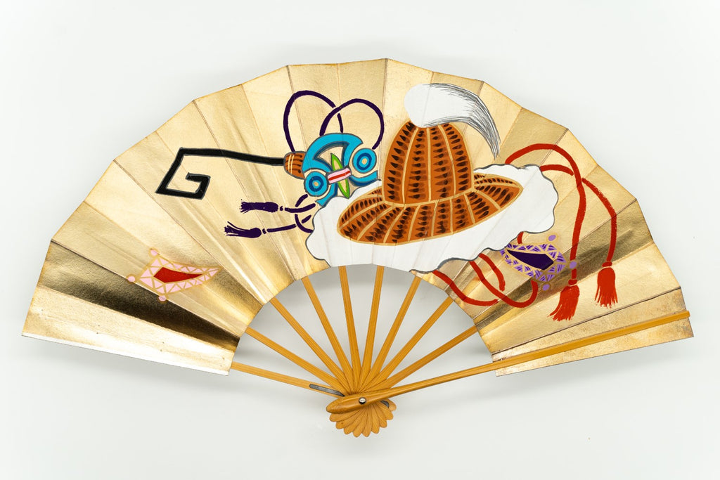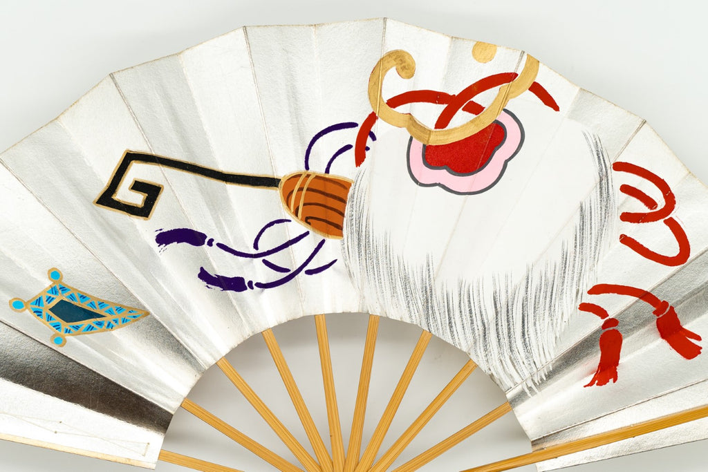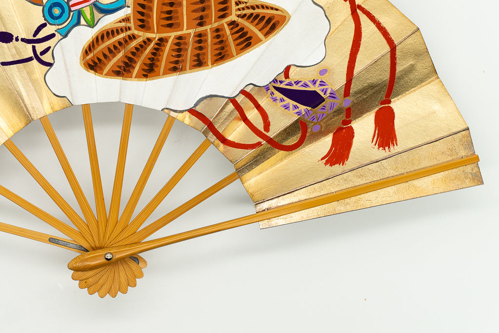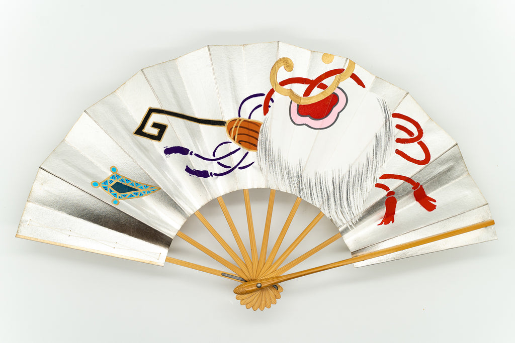 【一点もの・ビンテージ品】片面は華やかな金箔地、もう片面は落ち着いた銀箔地に日本舞踊の演目「蓬莱」で使用される宝物を描いた特別な絵柄で大変に珍しいお品です。