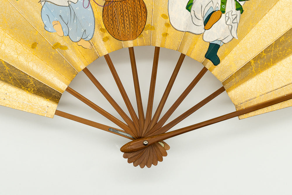 【ビンテージ品】上質な金もみ地に大黒様と恵比寿様が描かれています。商売繁盛、五穀豊穣、開運招福など、人々の生活に縁の深い福の神として様々なご利益をもたらしてくれると考えられています。もう片面には大黒様のお使いである俵ねずみがあしらわれています。ねずみは多産で子孫繁栄、俵は五穀豊穣を祝う縁起ものとされています。