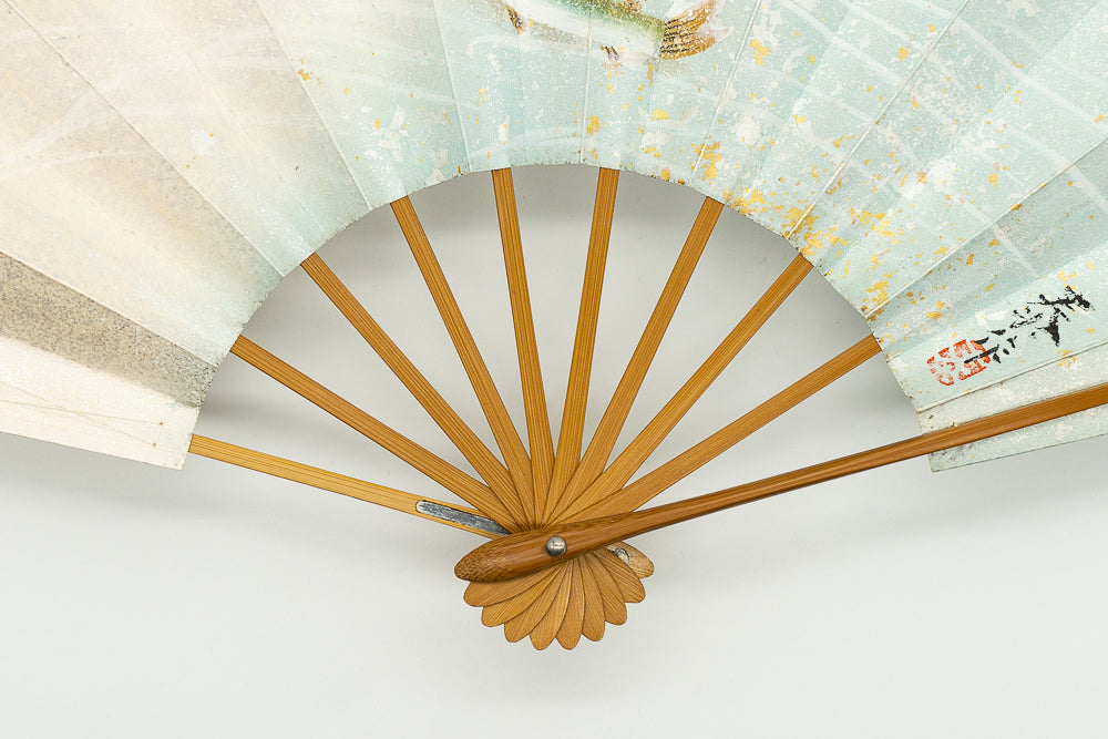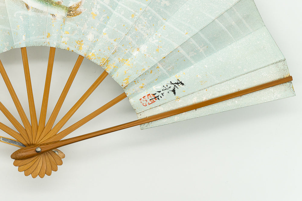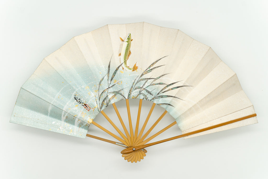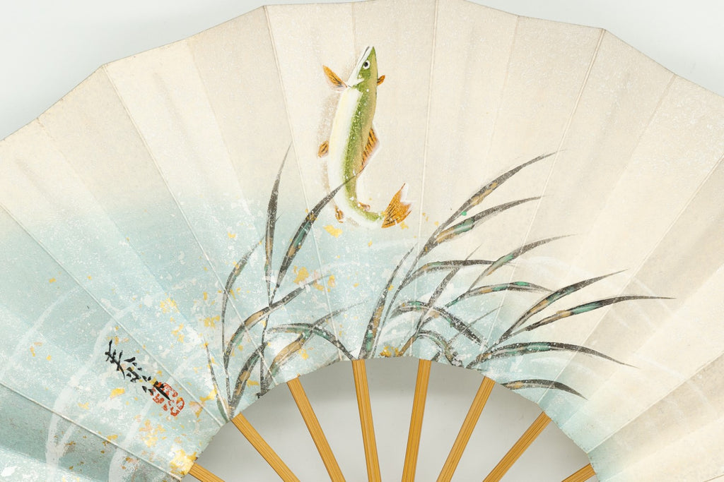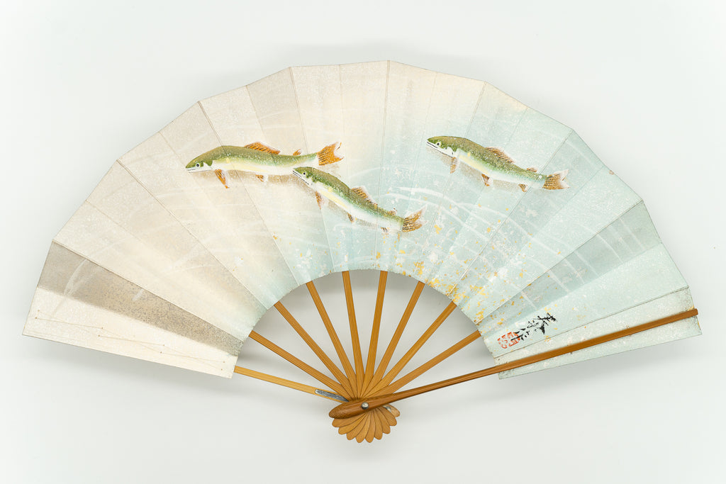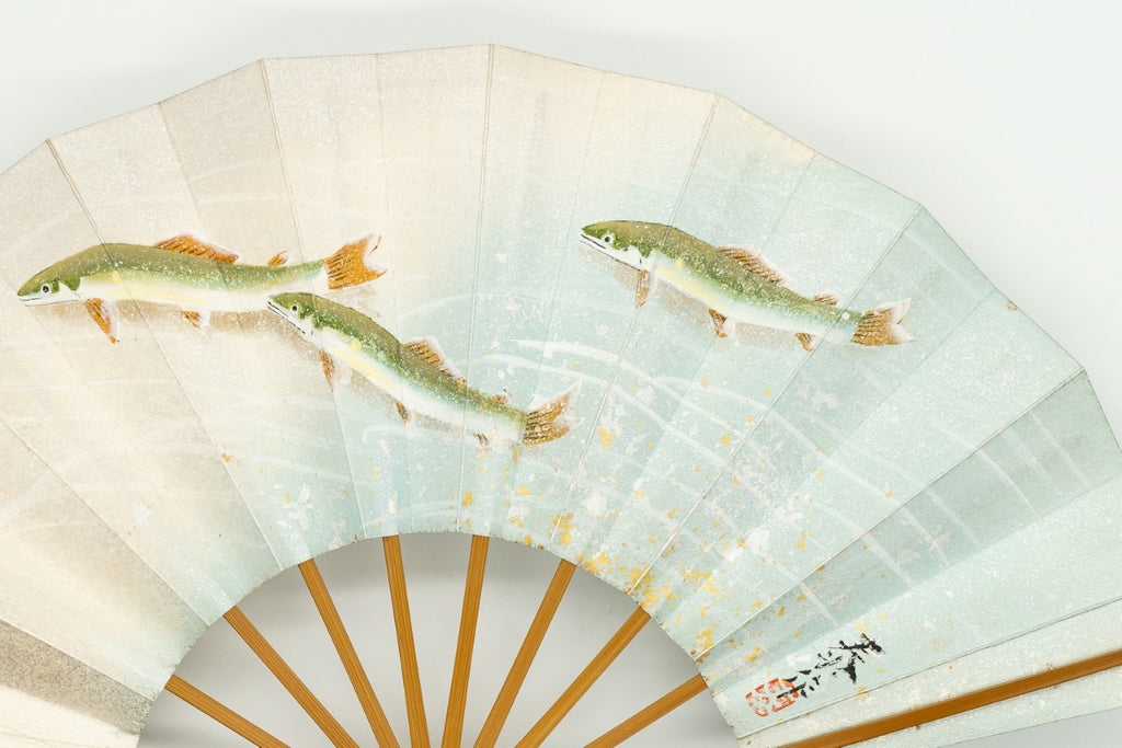 【ビンテージ】清流を優雅に泳ぐ鮎が手描きで丁寧に描かれています。淡い色調が上品で涼やかな雰囲気に仕上がっています。