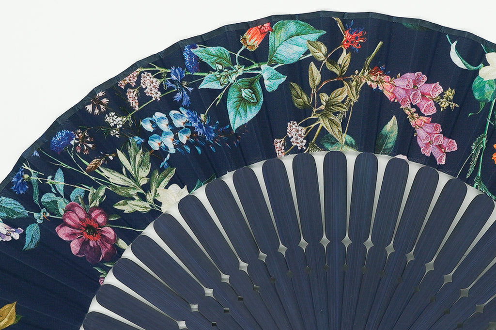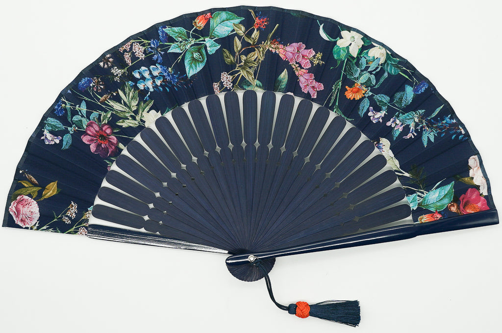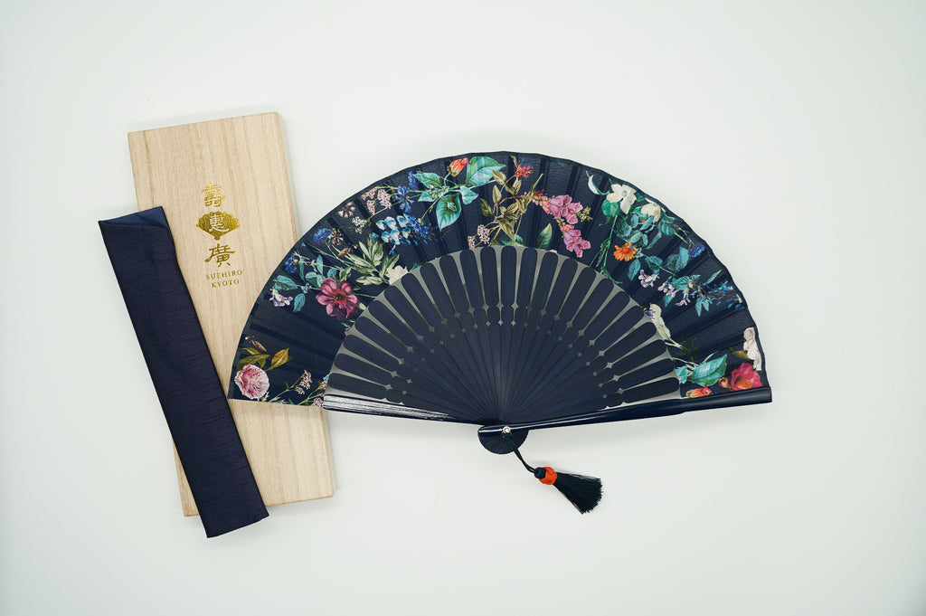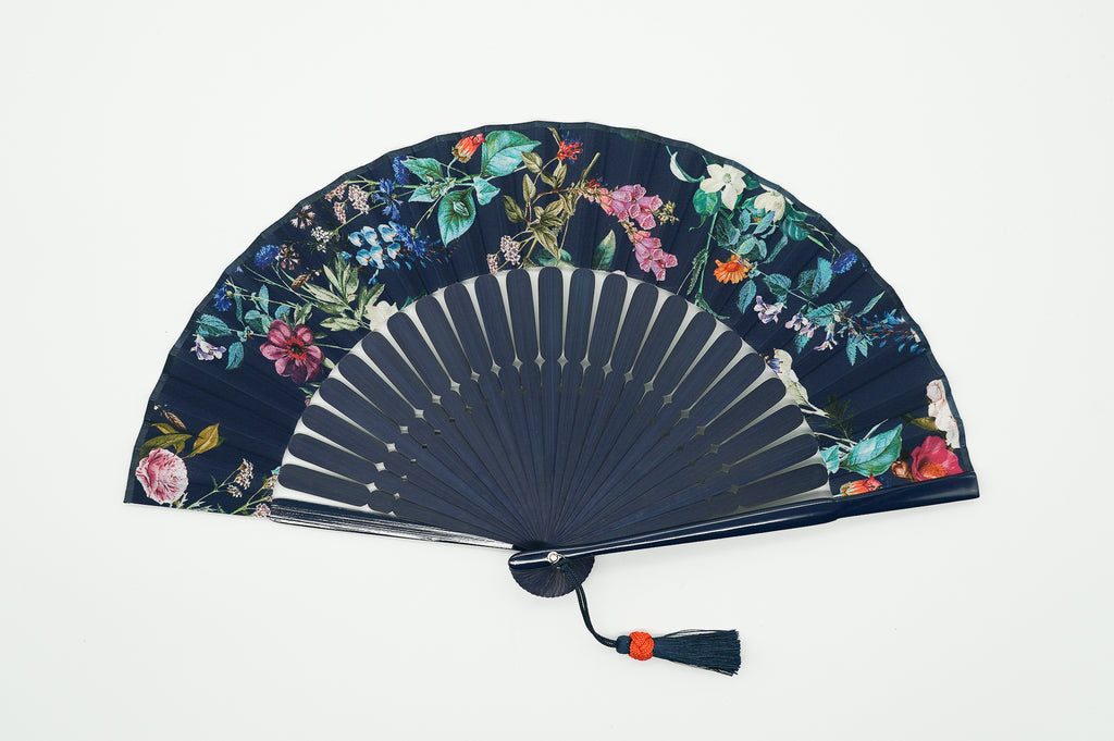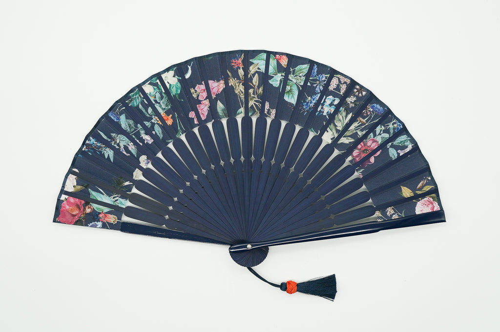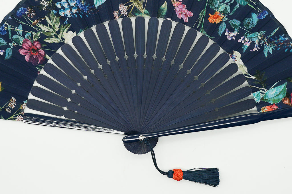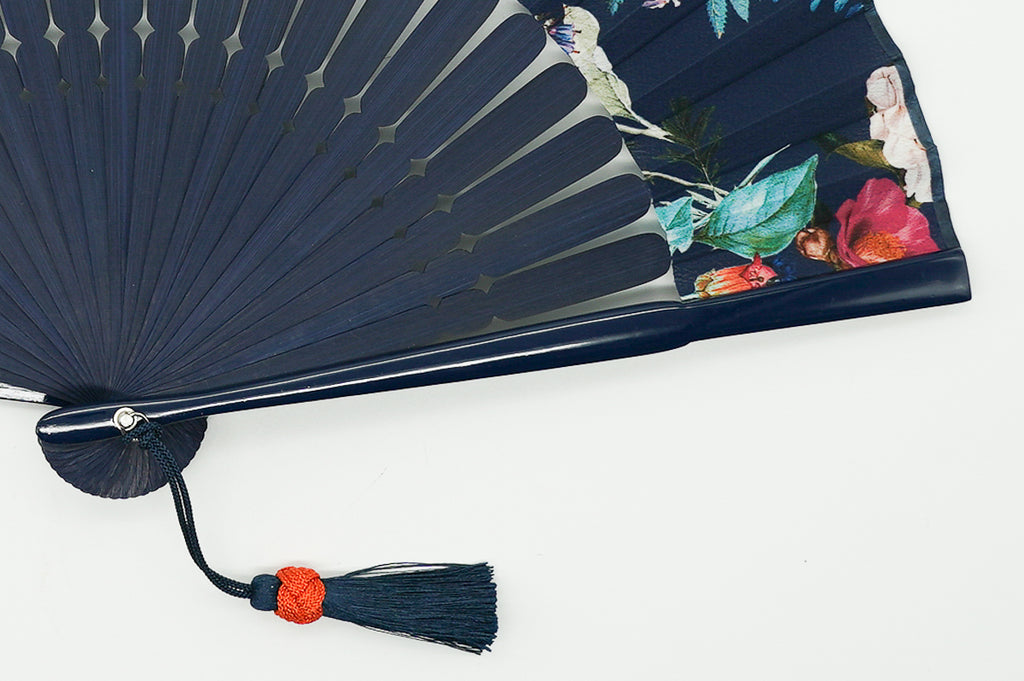 Characteristics of silk fans : They are made by pasting fabrics such as silk, cotton, and linen onto the fan surface, allowing you to enjoy the variety of expressions that the fabric has, such as its texture, texture, woven pattern, and ground pattern.