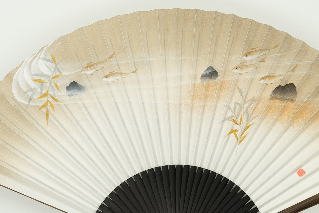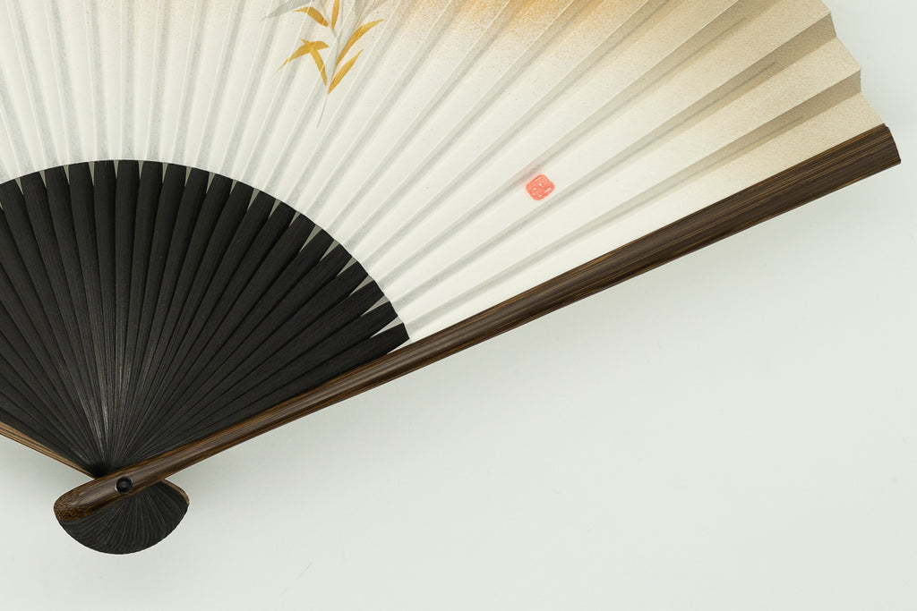 扇面沉稳的色彩,与唐木染的扇骨和染黑的扇骨相映成趣,呈现出优雅的和谐感。推荐作为礼物赠送。