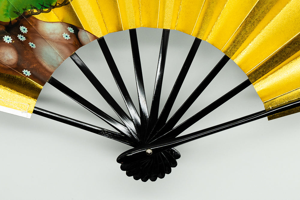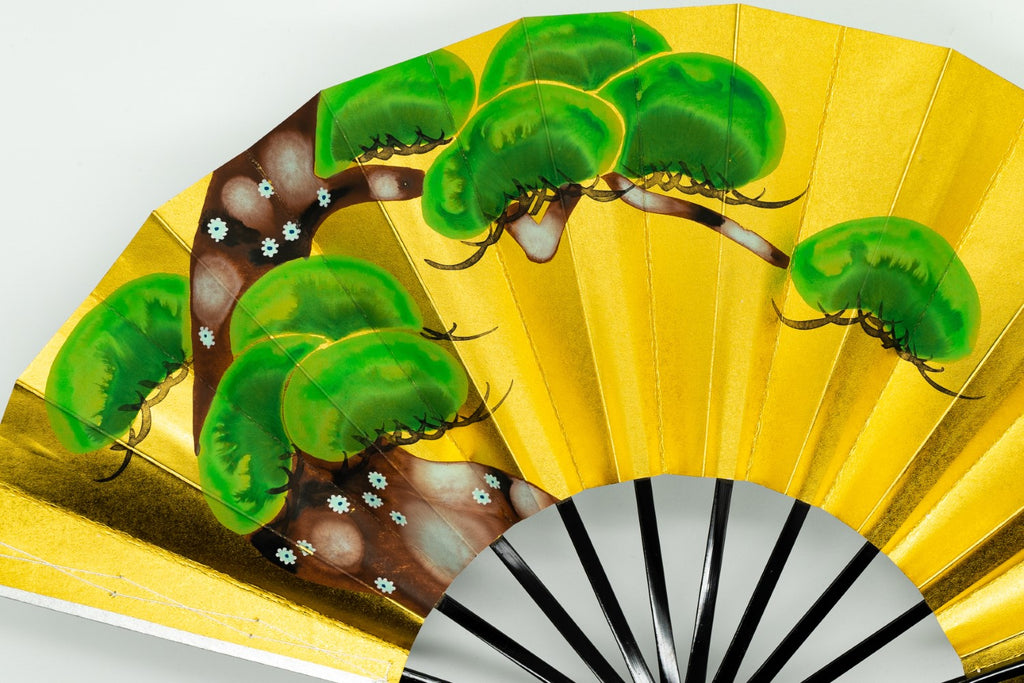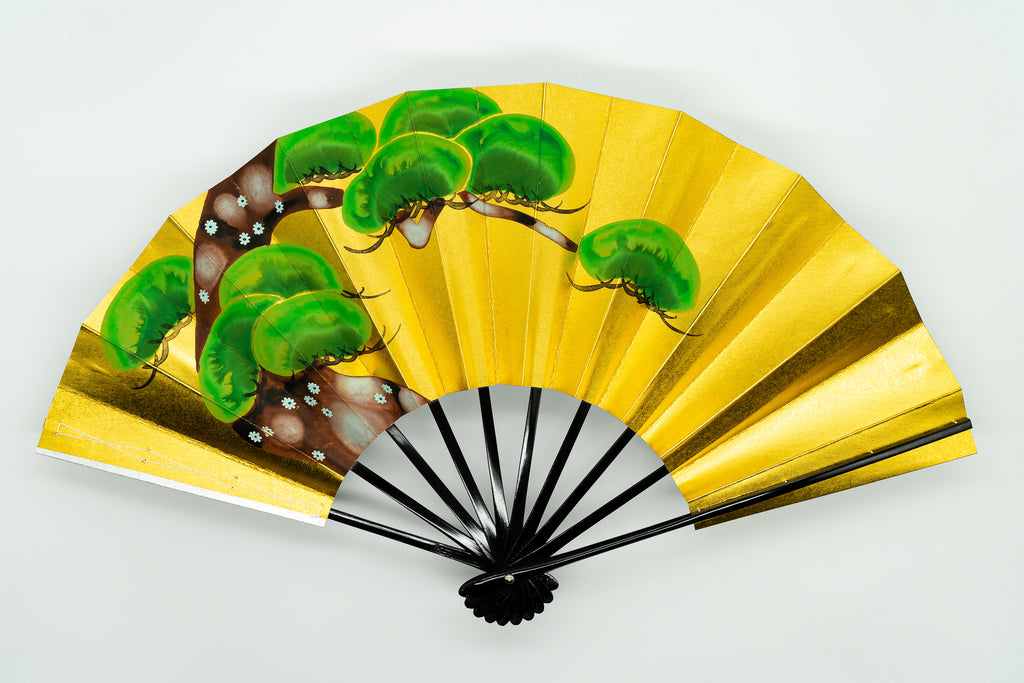 片面は金箔地、片面は銀箔地の扇面に光琳松が手描きで丁寧に描かれており華やかです。お好みに合わせて両面お使いいただけます。