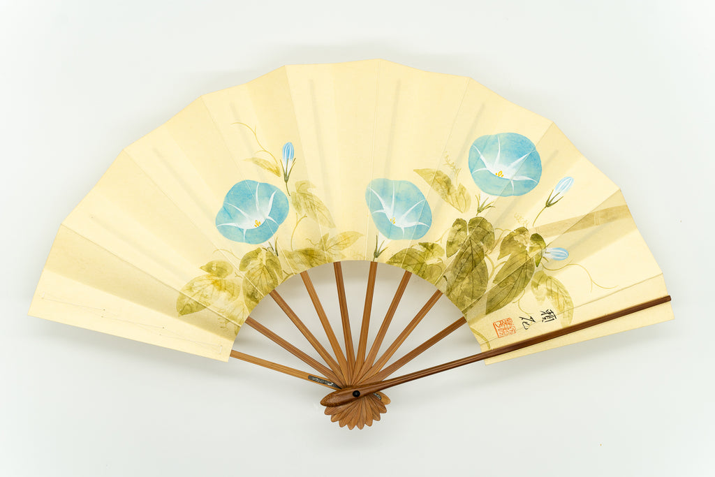 【ビンテージ品】鳥の子地の扇面に水彩で朝顔を描いています。瑞々しく、すっきりと爽やかな印象に仕上がっています。