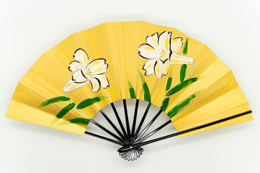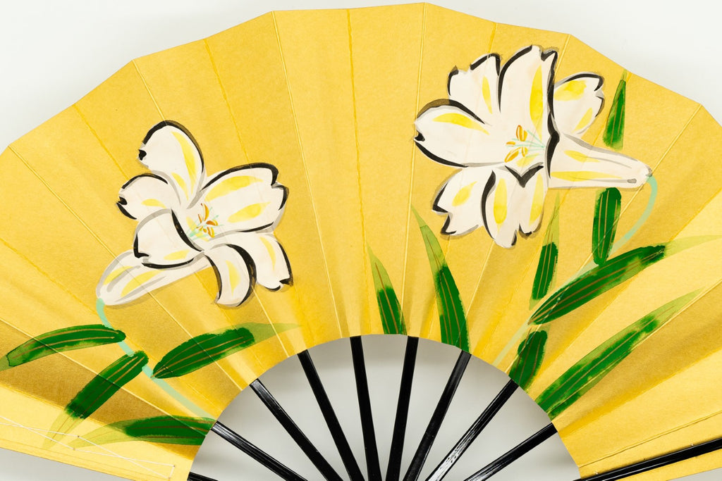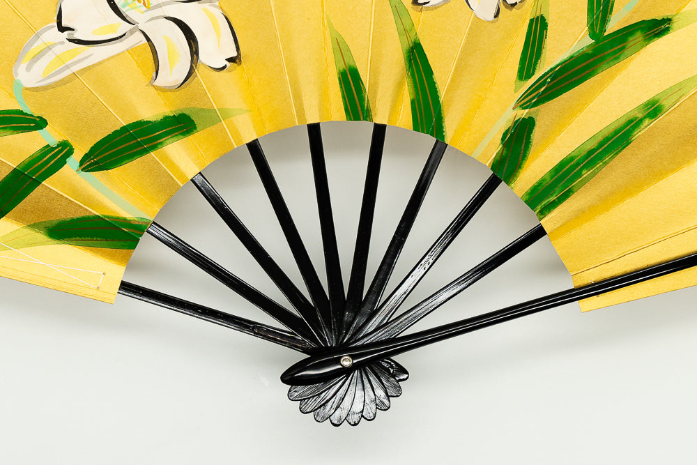 ゴールド地に大ぶりのゆりが手描きで描かれています。絵師の個性が光る存在感のある仕上がりとなっています。