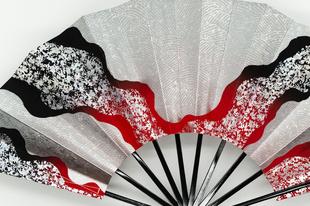 赤・黒のグラデーションにホログラム箔の色紙が光の加減によって美しく色変化します。容易には計り知れない神秘的な奥深さを表現しており、大変個性的で写真映えもする仕上がりとなっています。