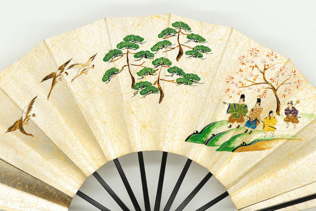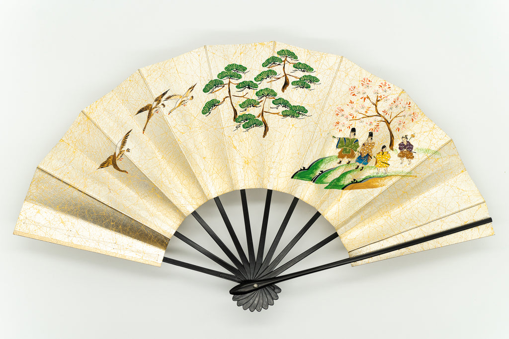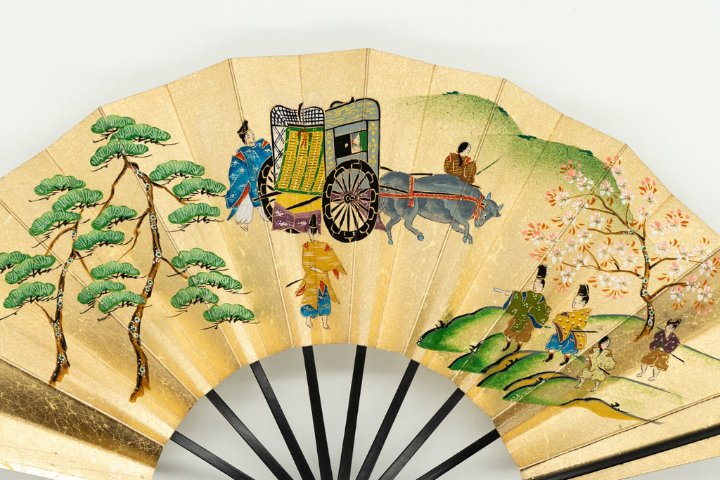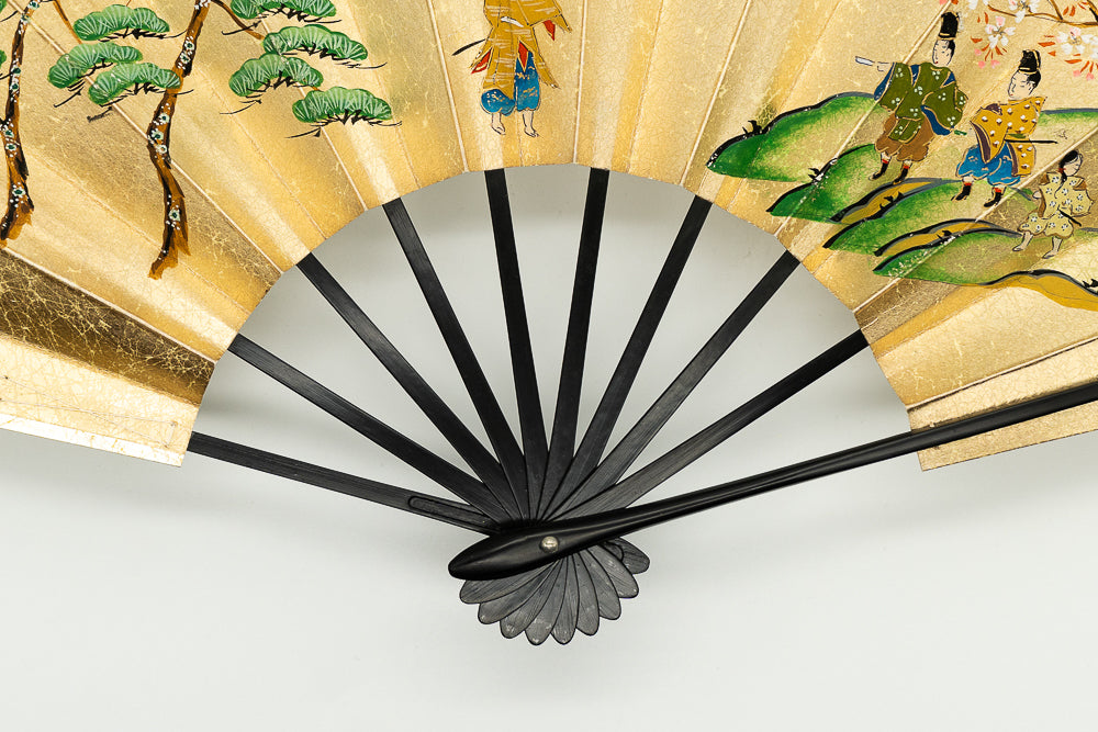 【ビンテージ】上質な金もみ地に古の京のお花見の様子が丁寧に描かれています。手描きならではの味わい深さを楽しんで頂ける作品です。